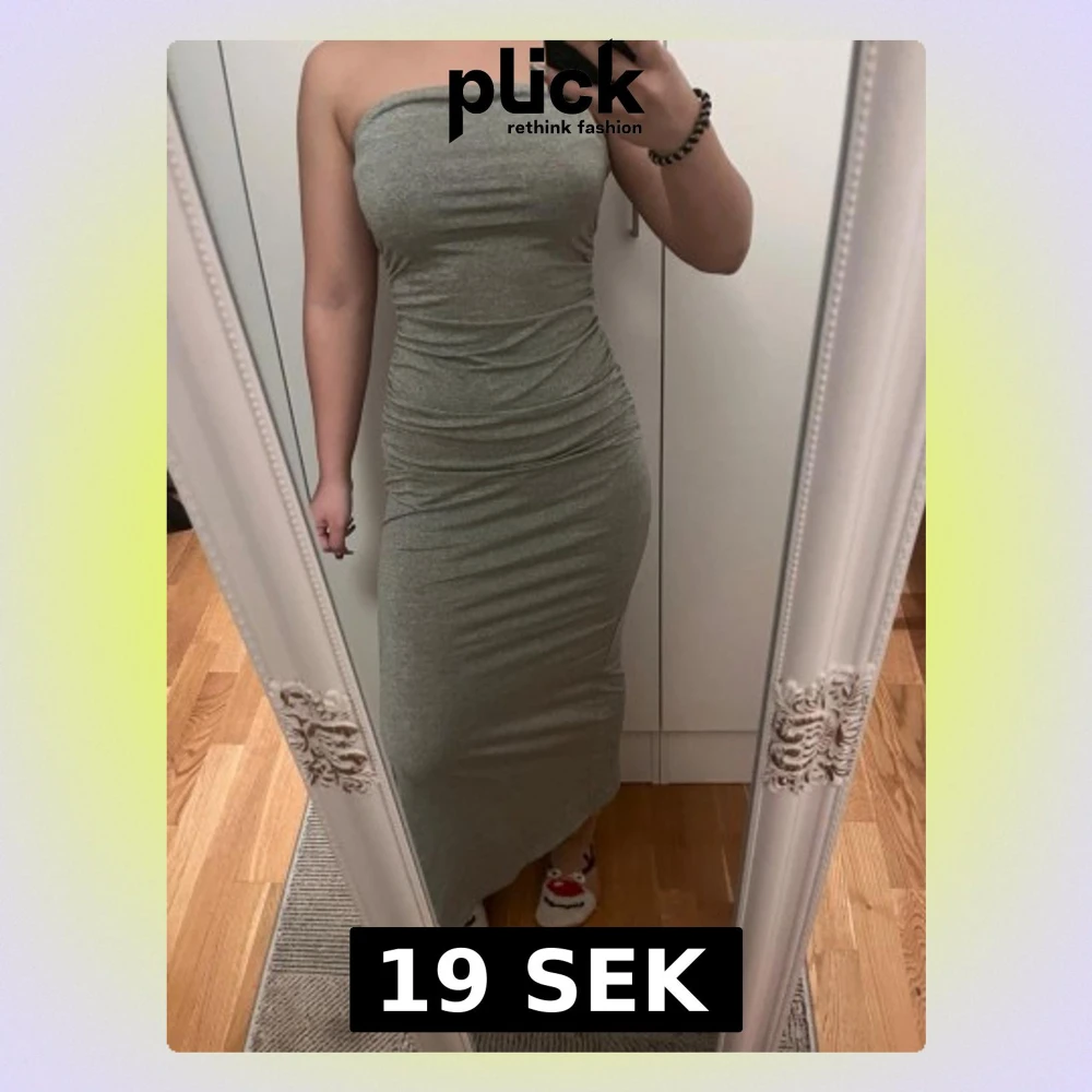 Säljer en stilren grå+svart(båda) axelbandslös långklänning i stretchigt material. Klänningen har en figurnära passform och enkel design utan detaljer, perfekt för dig som gillar minimalistisk stil.