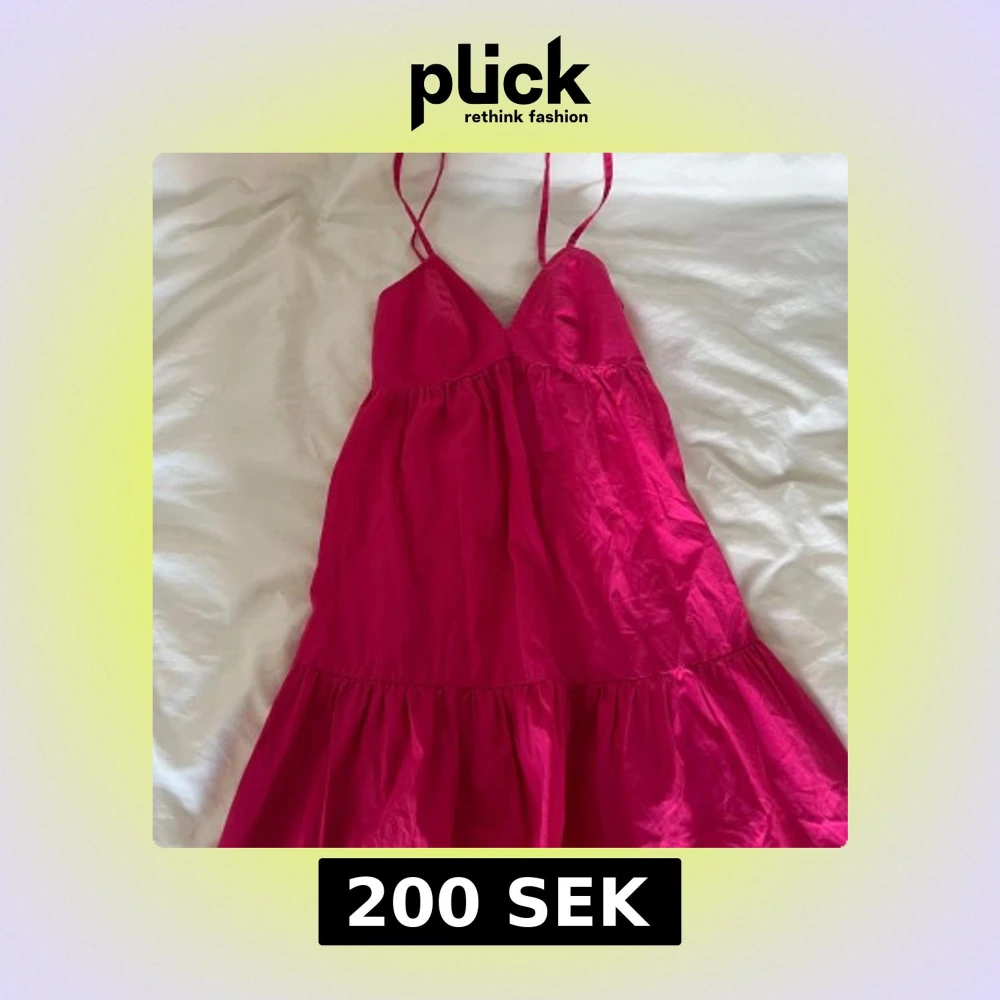 Snygg rosa klänning med smala axelband och volangdetaljer. Perfekt för sommaren. Köpt på Plick men var tyvärr för liten för mig, men den är i väldigt bra skick.💗