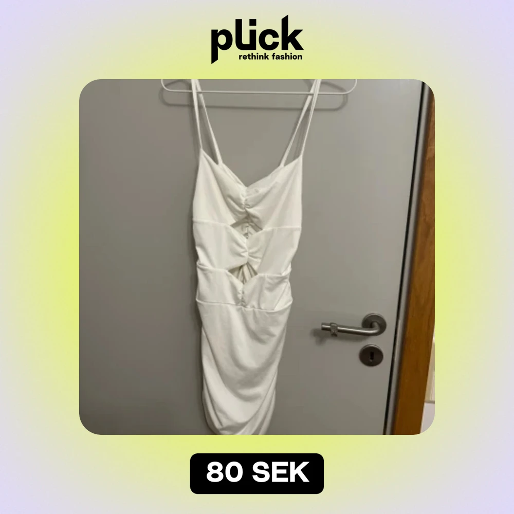 En medelkort klänning i ett skönt stretchig material! Jag använde den på min student och blev neeeeerdrängd och ALLT gick bort i tvätten. Klänningen är inte direkt min stil längre så därför säljer jag den vidare! Den sitter jättefint på en!