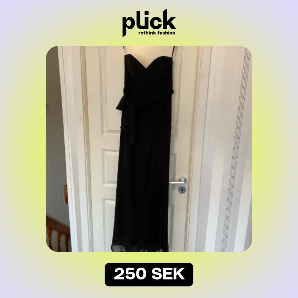 Enkel svart festklänning med ett band som går att ta bort alt. Knyta runt midjan eller ryggen.