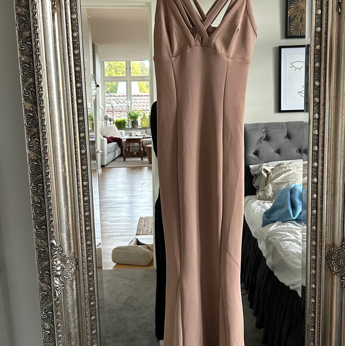 Super svårt och visa hur klänningen ser ut, skriv för bilder på. Jätte fin klänning tyvärr för liten för mig, använt en gång.