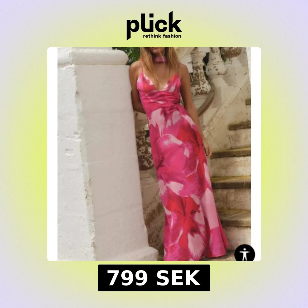Supersnygg långklänning i rosa och rött med stora blommiga mönster från Zara. Slutsåld på hemsidan och aldrig använd. Klänningen har smala axelband, v-ringning och öppen rygg med snygga knytband. Perfekt för sommarens alla tillfällen.