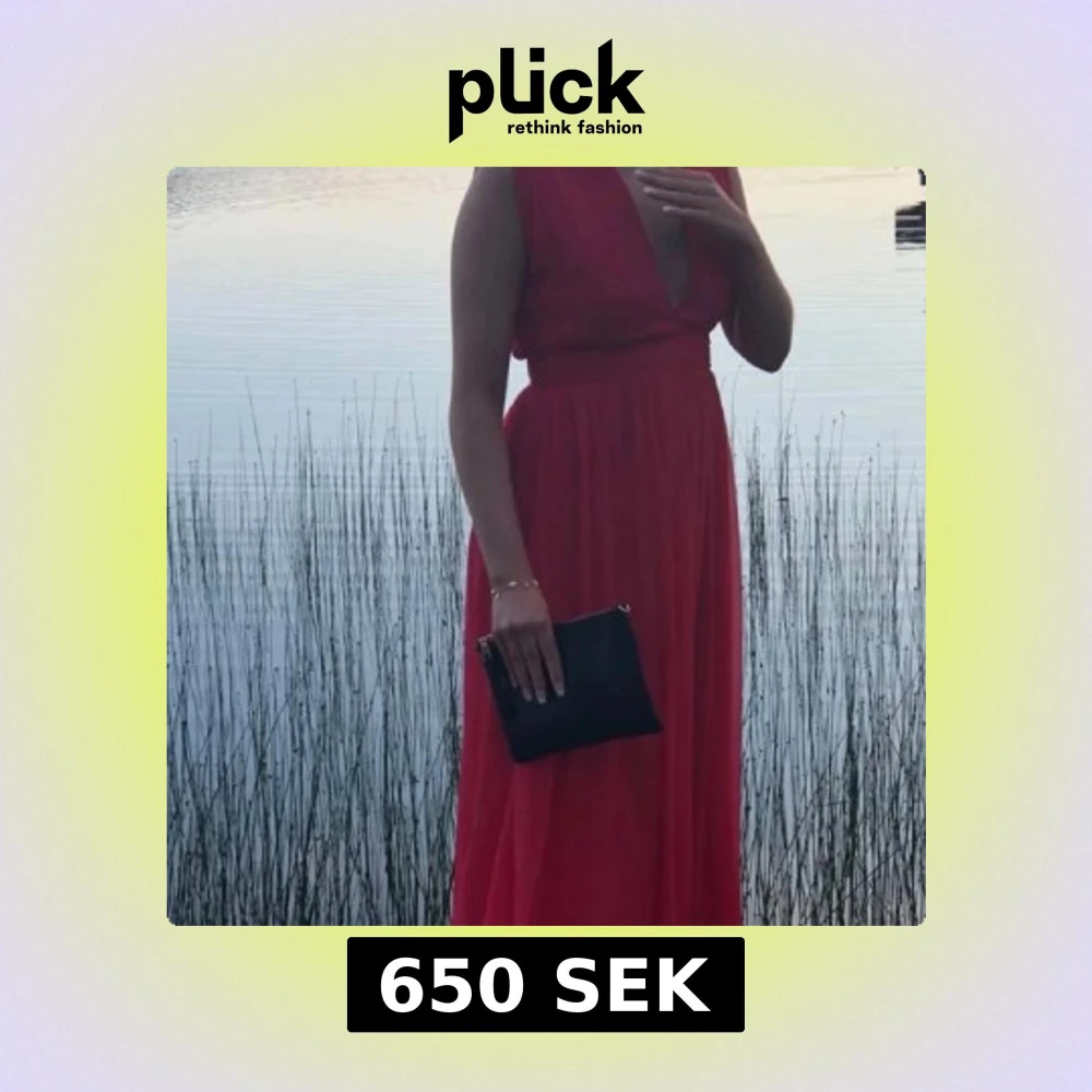 Röd långklänning med djup v-ringning och ärmlös design ❤️