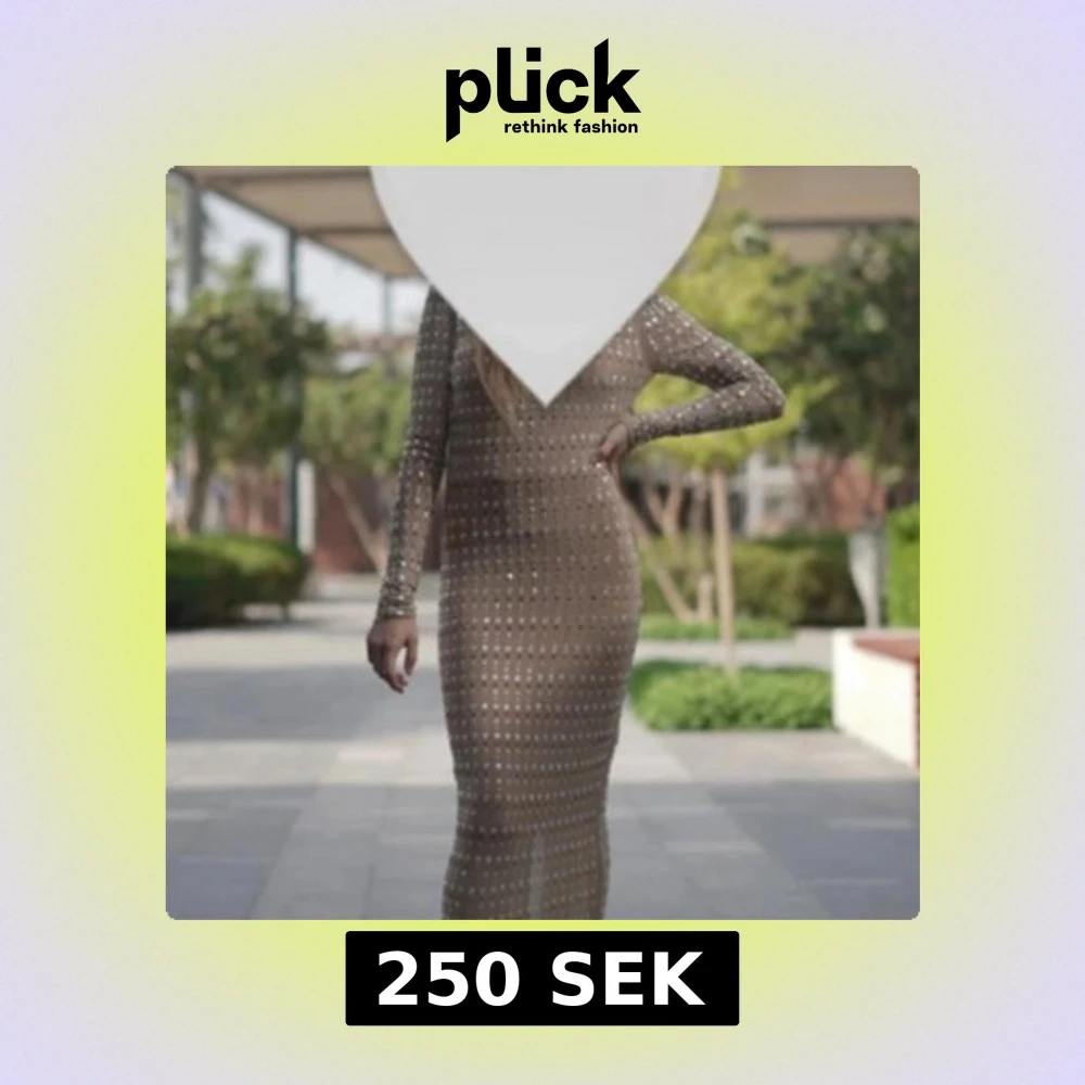 Säljer en superfin långklänning i beige med glittriga detaljer. Klänningen har lång ärm och figurnära passform som framhäver siluetten. Perfekt för dig som vill sticka ut med en elegant och trendig look.