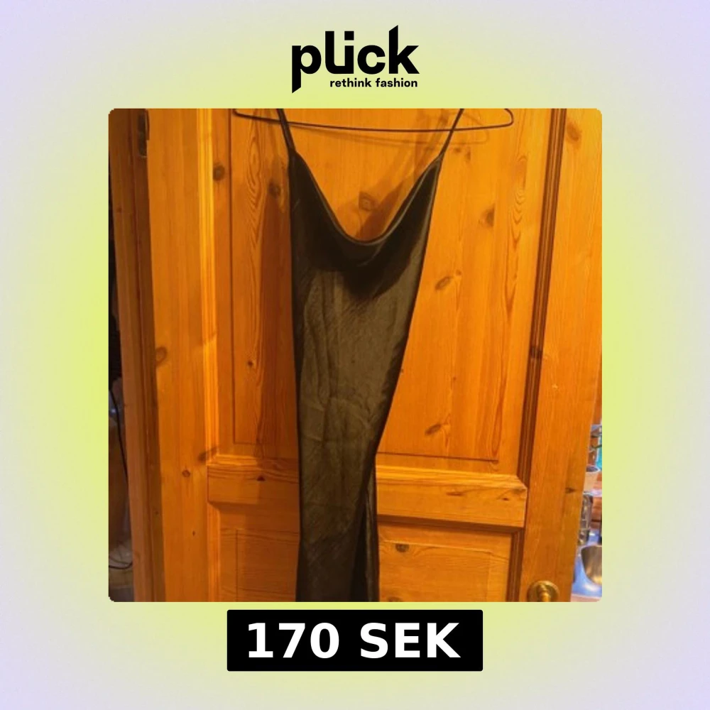 Svart långklänning i glansigt satinliknande material med tunna axelband och snygg draperad urringning. Klänningen har en slits på sidan och smal passform, perfekt för dig som gillar en elegant och stilren look. Snörning därbak. Xs/S är storleken beroende på hur hårt man knyter snören i ryggen.