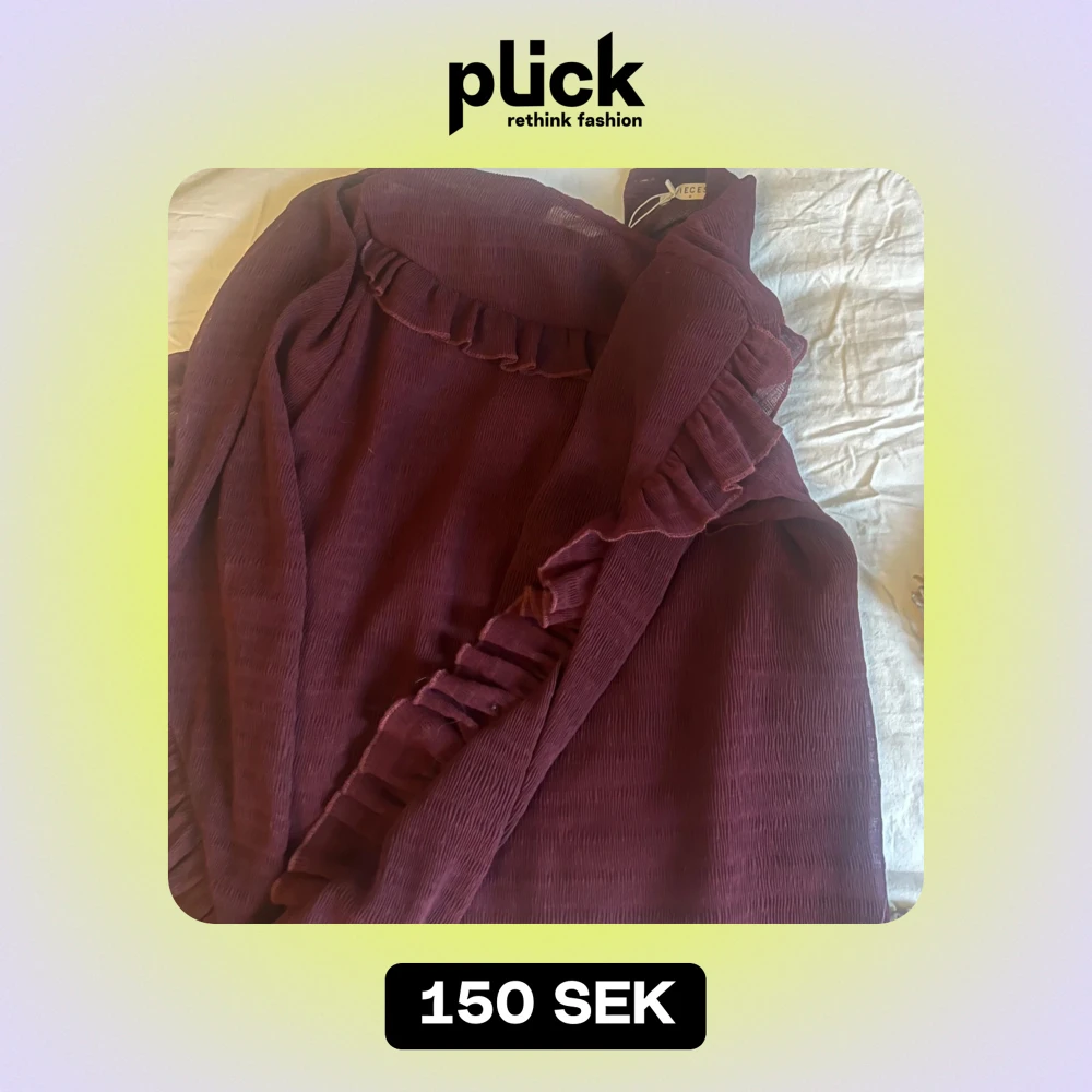 Säljer en superfin vinröd topp från Pieces. Den har volangdetaljer längs halsen och ärmarna, vilket ger en romantisk touch. Perfekt för höst och vinter, och kan stylas både upp och ner beroende på tillfälle. Så fin❤️🍓