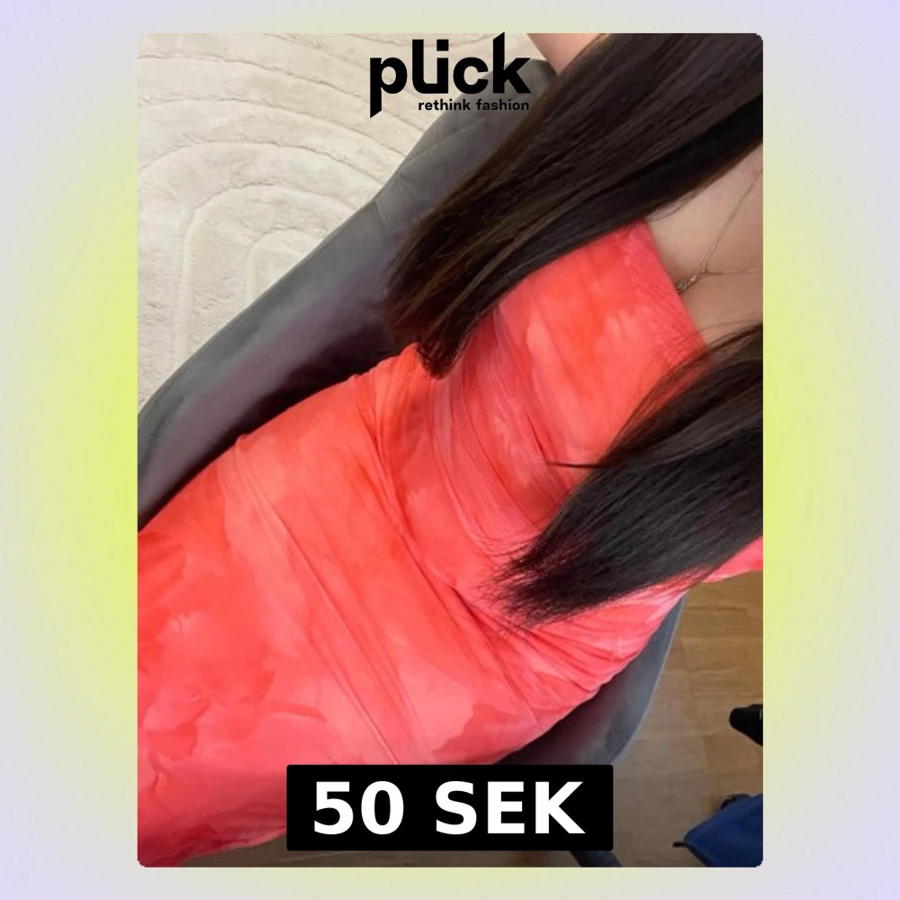 Oanvänd storlek S, långklänning i korallrött med offshoulder-design och subtilt mönster. Klänningen har figurnära passform och är tillverkad i ett mjukt, stretchigt material som ger en smickrande siluett.