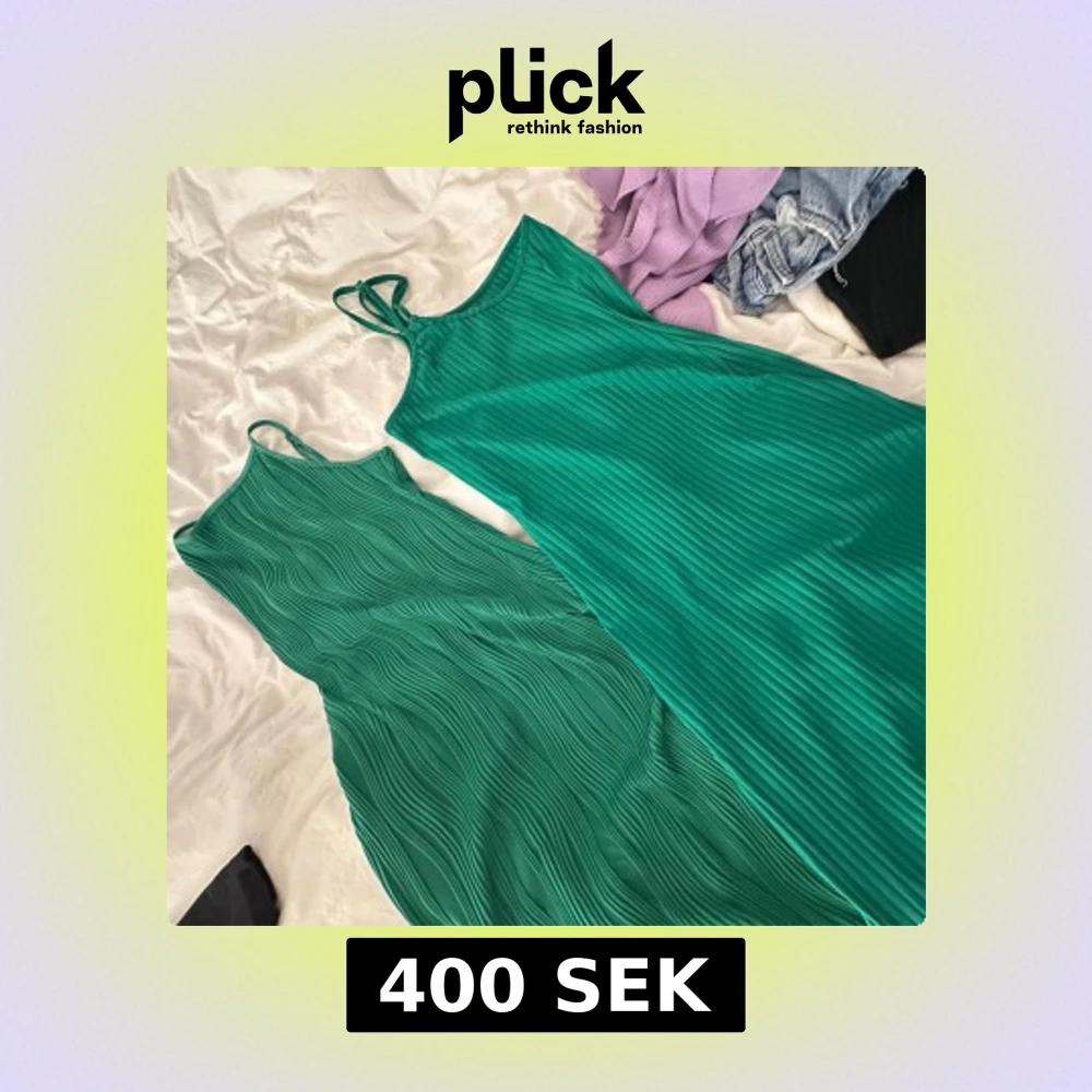 Säljer en snygg grön långklänning med smala axelband och ribbad struktur. Klänningen har en figurnära passform och är perfekt för sommardagar. Enkel och stilren design som passar till många tillfällen.