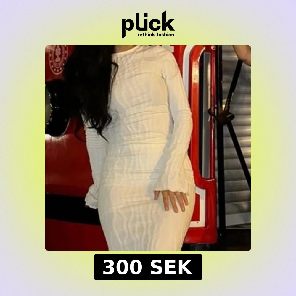 Säljer en vit långärmad klänning med figurnära passform och subtila vågiga sömmar som ger en cool struktur. Klänningen har rund halsringning och är perfekt för dig som gillar stilrena och trendiga plagg.