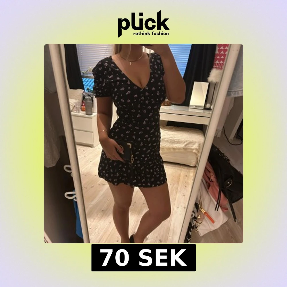 Super söt blommig klänning med puffärmar. Knytning i midjan som man kan knyta både fram och bak som gör att midjan framhävs .🥰