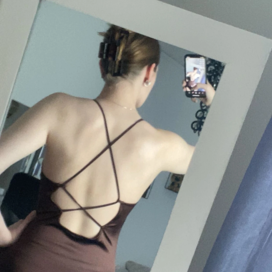 Säljer en supersnygg brun, tight kortklänning från H&M Divided. Klänningen har tunna axelband som korsas i ryggen och ger en öppen rygg med snygg snörningsdetalj. Materialet är stretchigt och följsamt, perfekt för dig som gillar en enkel men stilren look💕 Använd 1 gång.