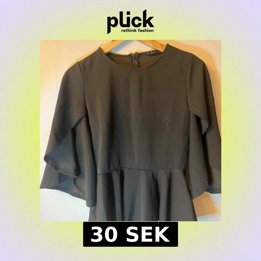 Svart topp från SHEIN med rund halsringning och volangärmar som ger en cool och flowy vibe. Toppen har en markerad midja och dragkedja i ryggen. Perfekt för dig som gillar enkel men snygg stil. Strl S