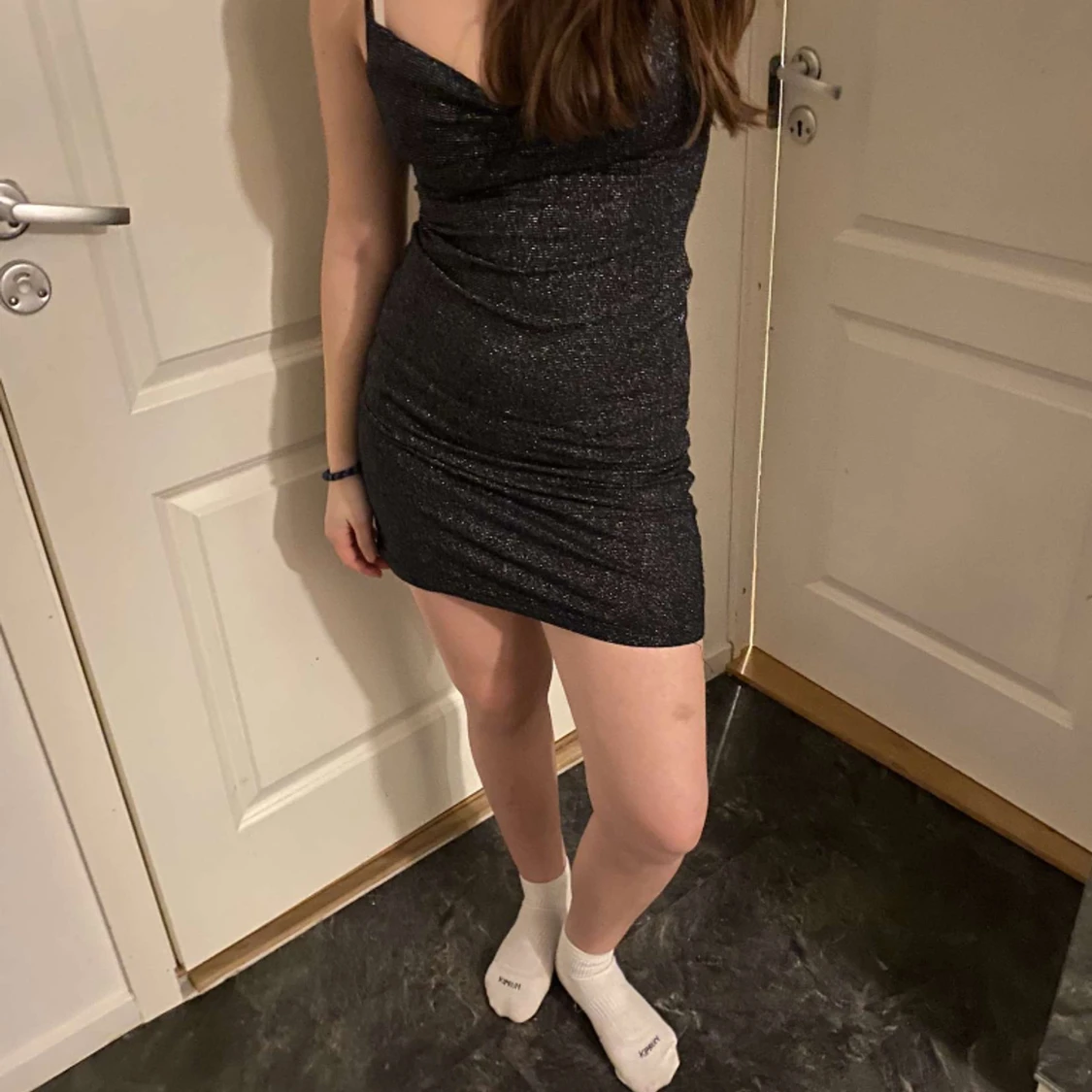 Svartglittrig partyklänning med supersnygg passform som verkligen framhäver dina kurvor!🖤🙌💗 Nästan helt oanvänd och är i prima skick! Klänningen är stretchiga så passar dig oavsett. Klänningen har vadering. Först i kvarn och priset är diskuterbart!💗