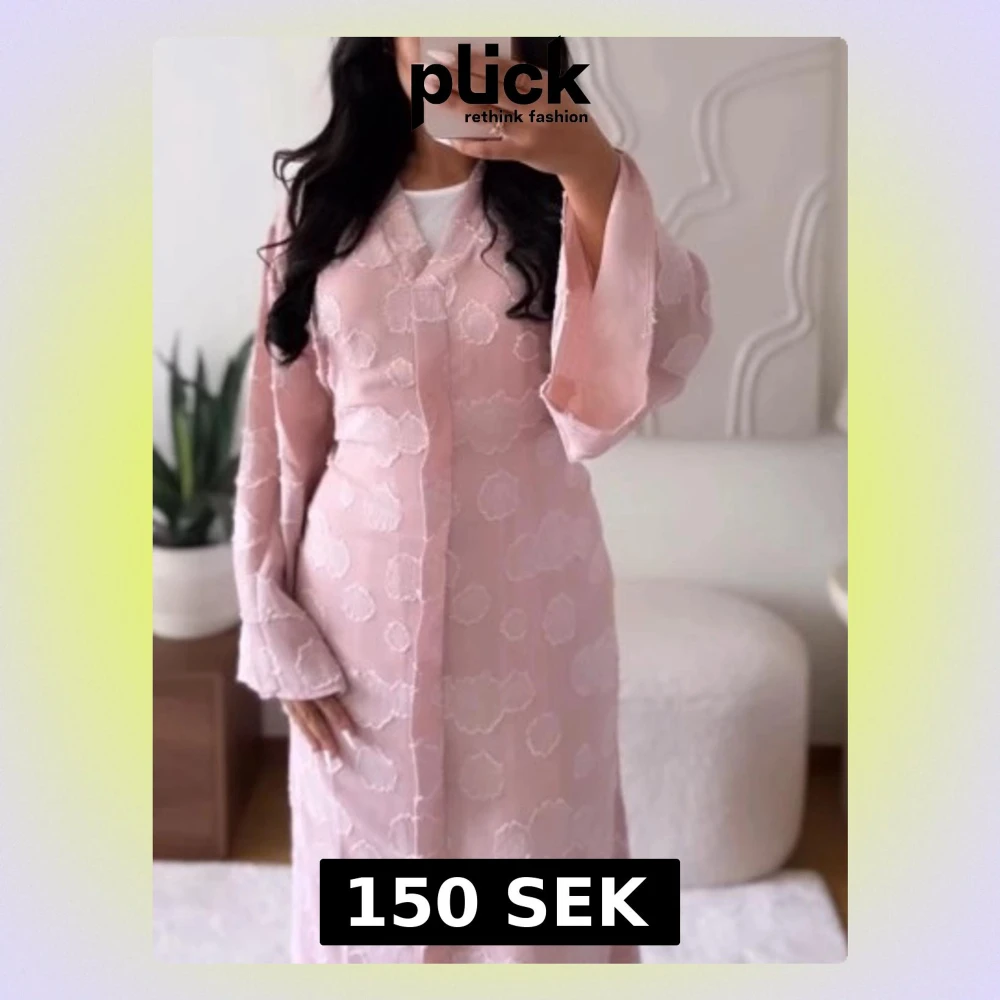 Elegant ljusrosa långklänning med subtilt blommigt mönster och vida ärmar. Klänningen har en rak passform och är tillverkad i ett lätt tyg som ger ett luftigt intryck. Perfekt för dig som gillar en feminin och stilren look. Passar alla Imed att den knyts i ryggen