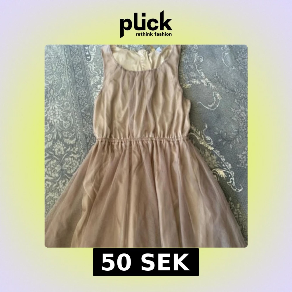 Supersöt beige klänning med tunn tyll och markerad midja. Den är ärmlös och har en rund halsringning samt dragkedja bak. Perfekt för dig som gillar en romantisk och luftig stil.