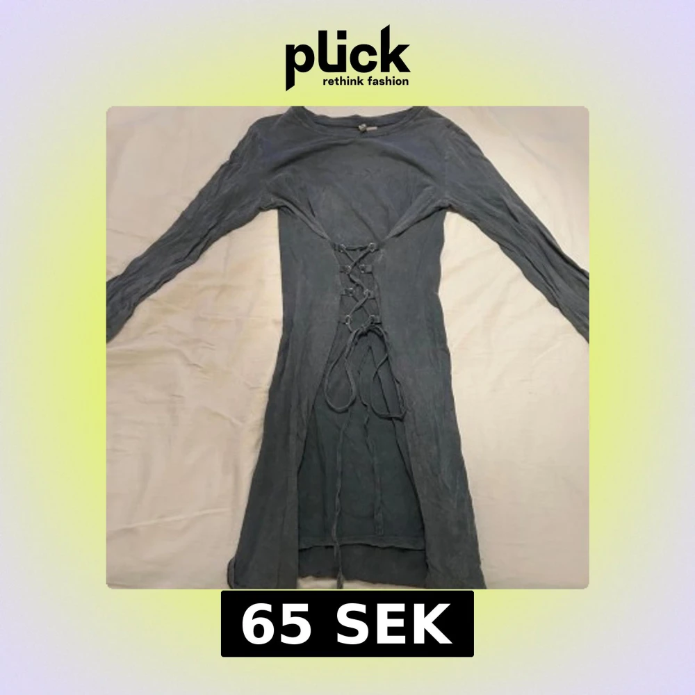 Supercool långärmad mörkgrå klänning från H&M. Klänningen har snörning framtill. Storlek S