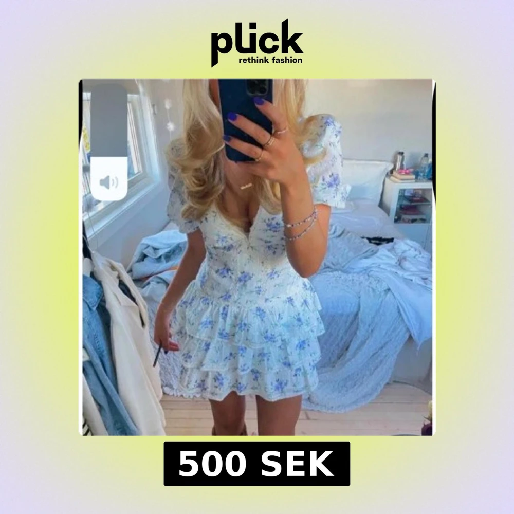 Blommig kortklänning med volang