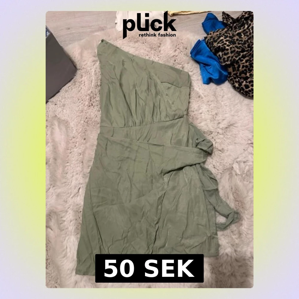 Snygg ljusgrön oneshoulder klänning med omlottkänsla och knyt i midjan. Klänningen har en kort längd och är tillverkad i ett tunt, mjukt tyg som ger ett luftigt intryck. Perfekt för sommarens alla tillfällen.