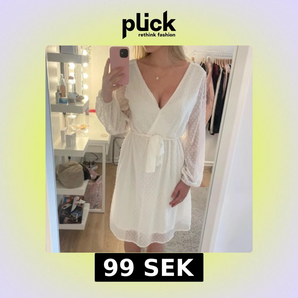 Superfin vit kort omlottklänning med diskret prickigt mönster. Klänningen har ett band och en zipledja där bak (sisra bilden) Perfekt nu inför sommaren!