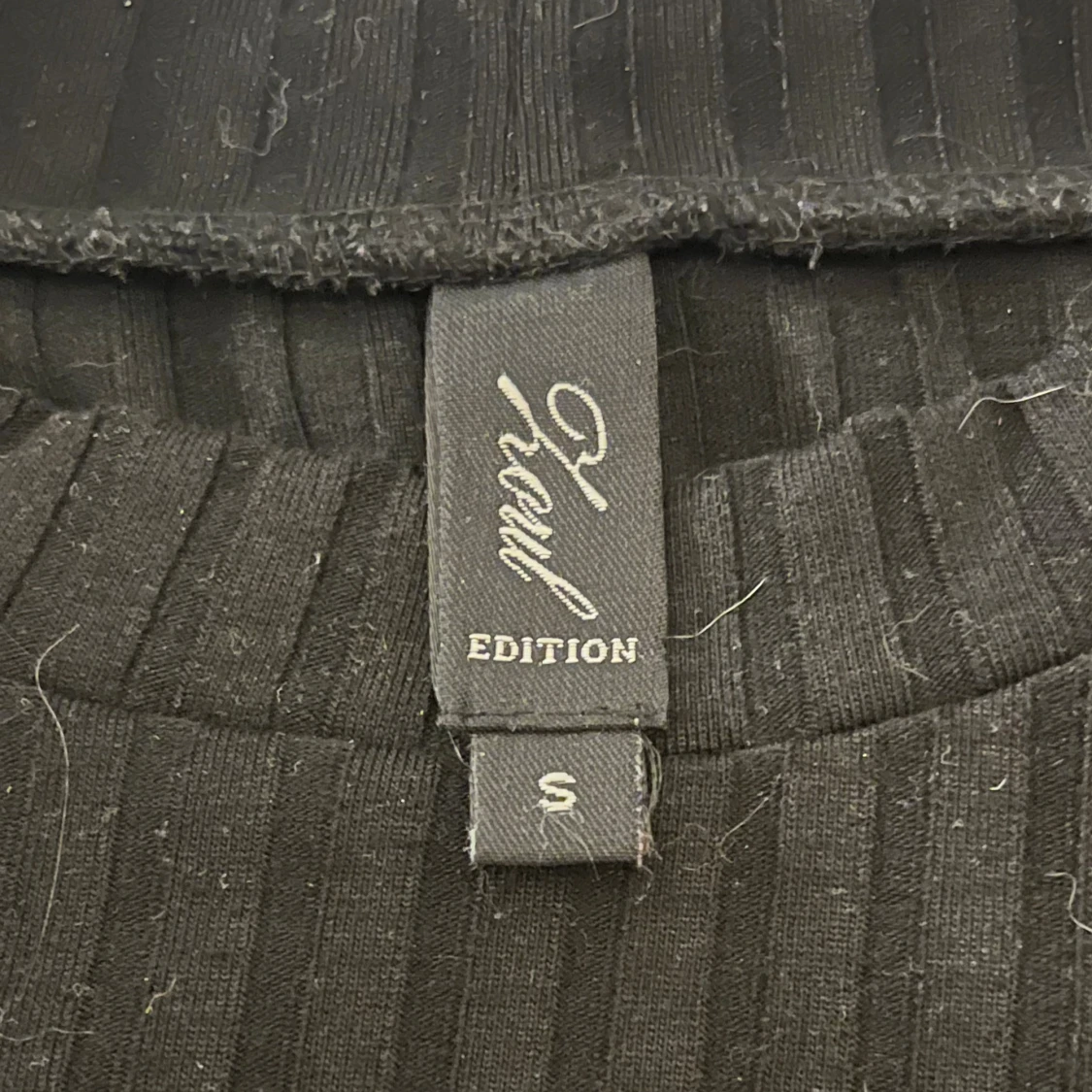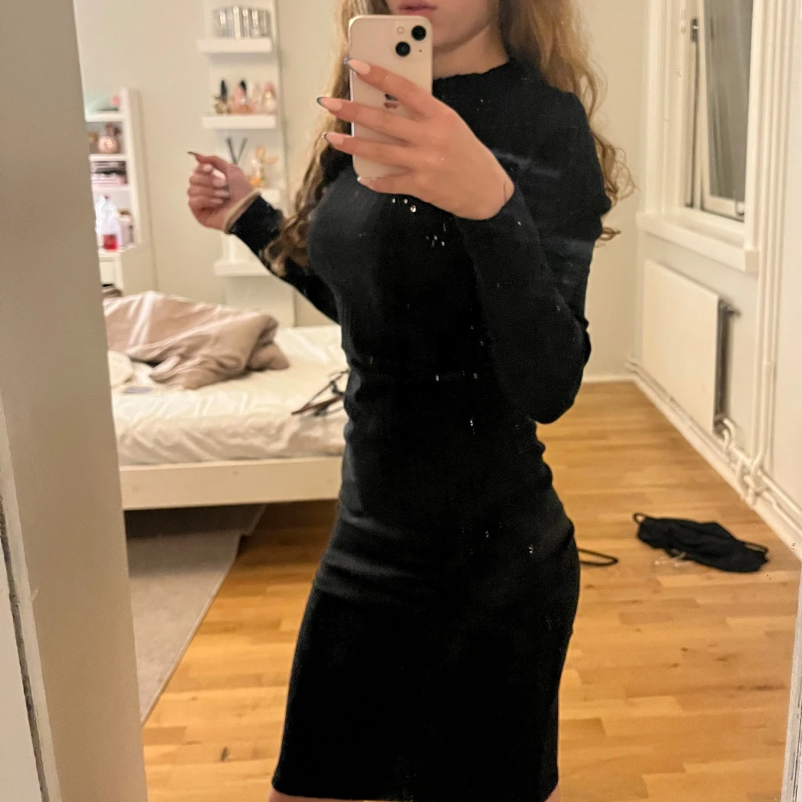 Säljer en svart, långärmad, ribbad klänning från Kout Edition i storlek S.