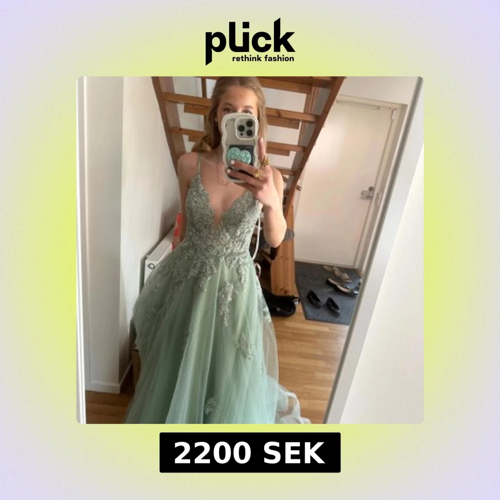 Säljer en magisk ljusgrön långklänning, perfekt till dig som ska ha bal 💚 Använd 1 gång och är i helt nytt skick, ganska lång och bred ner från höfterna. Jätte bekväm och skön att ha på sig!!😍😍