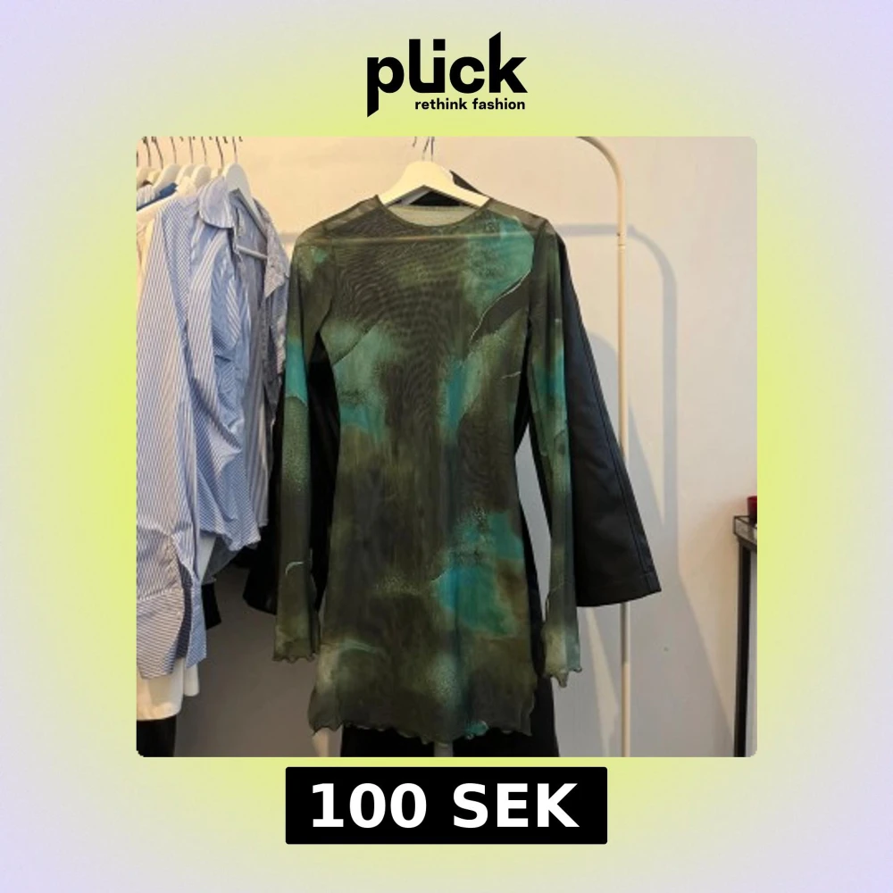 Säljer en cool meshklänning med lång ärm i gröna och blå toner. Klänningen är genomskinlig