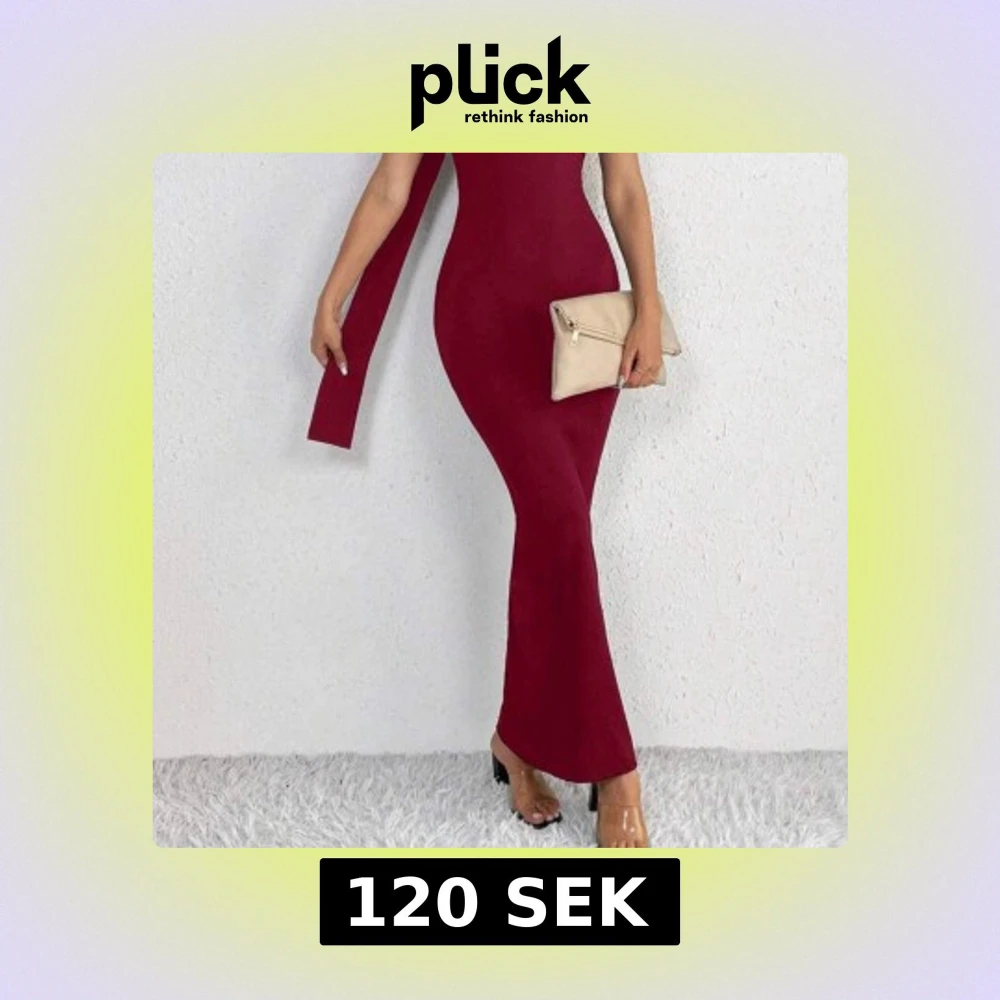 Supersnygg vinröd långklänning med figurnära passform och oneshoulder-design. Klänningen har en lång slank siluett, öppen rygg och en cool detalj med bred axelrem. Perfekt för dig som vill sticka ut med en elegant och trendig look. Endast använd 1 gång.