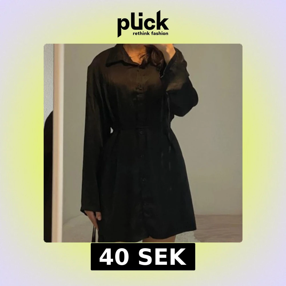 Stilren svart skjortklänning med lång ärm och knappar hela vägen framtill. Klänningen har en klassisk krage och markerad midja, vilket ger en snygg siluett. Perfekt för dig som gillar minimalistisk och tidlös stil.