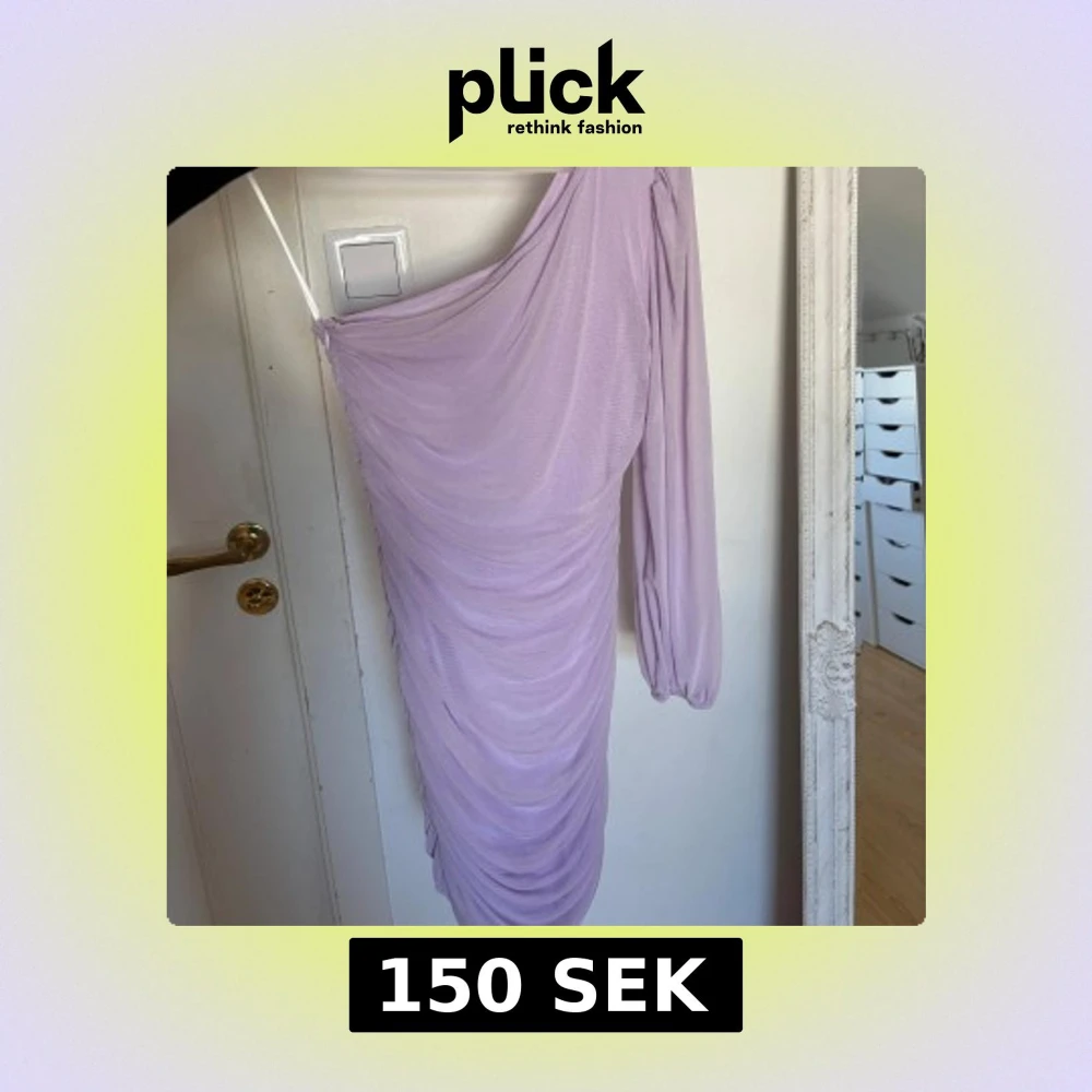 Säljer en snygg OANVÄND ljuslila oneshoulder klänning med lång ärm och draperad effekt. Klänningen har en tight passform.