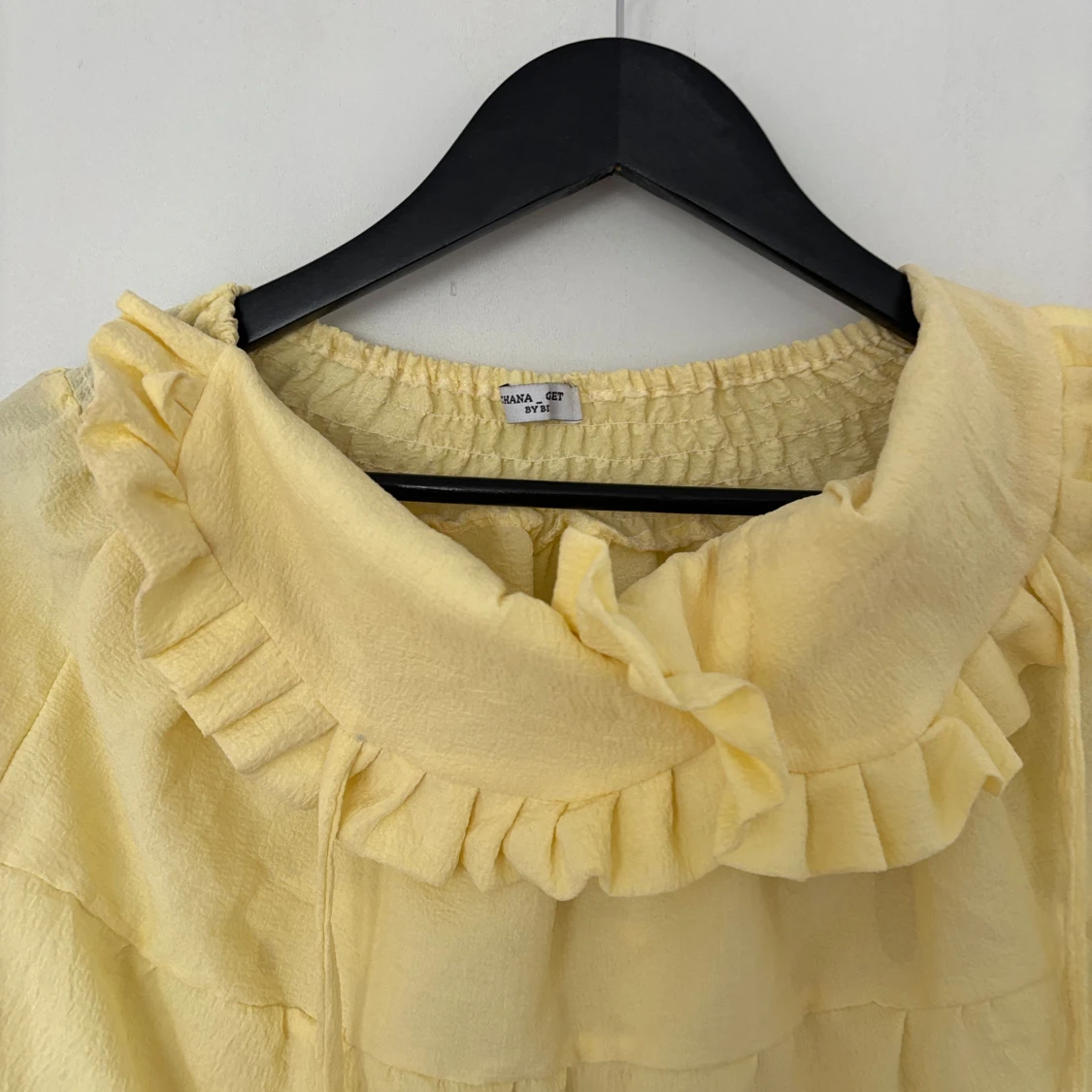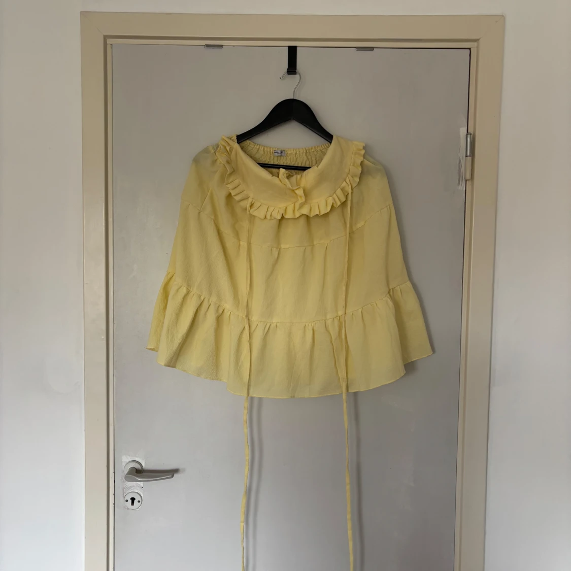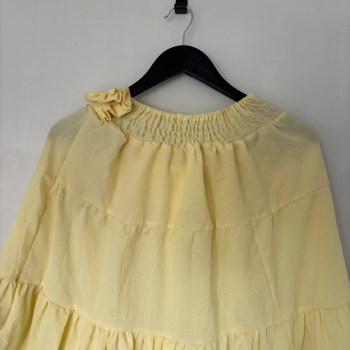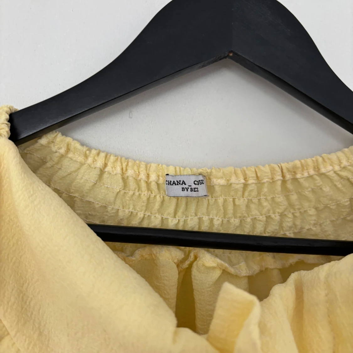 Supersöt ljusgul kortkjol med volanger och bred resår i midjan från Chana by Bel. Kjolen har knytband och en romantisk volangkant upptill som ger en lekfull vibe. Perfekt för dig som gillar en feminin och trendig look.