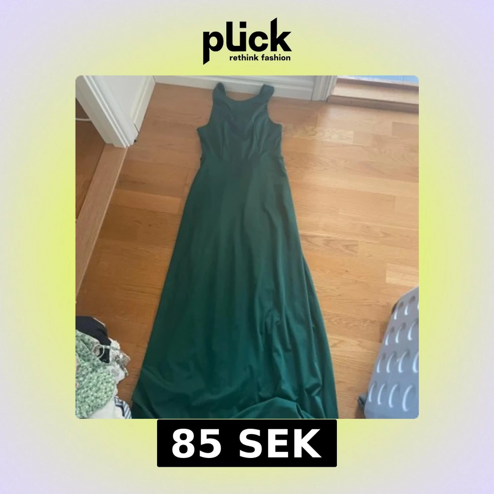 Snygg mörkgrön långklänning med breda axelband och twistad detalj i ryggen. Klänningen har en elegant, figurnära överdel och faller snyggt ner mot golvet. Perfekt för dig som vill sticka ut med en stilren look.
