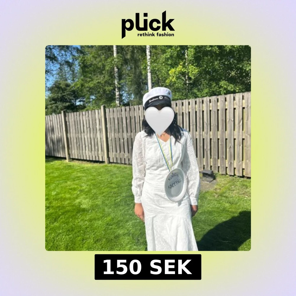 Superfin vit långklänning från Shein med v-ringning och långa ärmar. Klänningen har broderade blommor och rosetter över hela tyget, vilket gör den ännu finare. Tillverkad i bomull, med dragkedja i ryggen och lätt puff vid axlarna. Perfekt för nästan allt skulle jag säga, hade den själv på min student. Klänningen har bara använts en gång 🤍