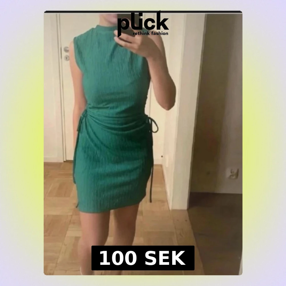 Snygg grön kortklänning med ribbad struktur och snörning i sidan. Ärmlös modell med hög hals och figurnära passform. Perfekt för dig som vill ha en enkel men trendig look.
