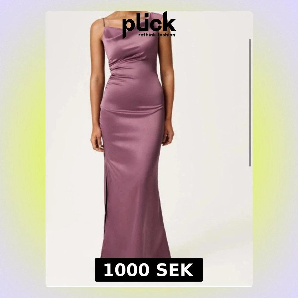 Lång lila satinklänning till bal