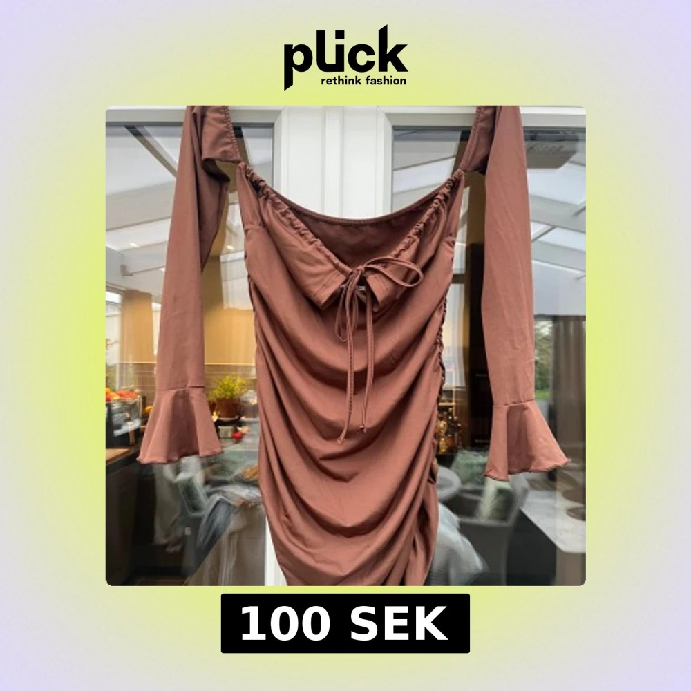 Supersnygg brun kortklänning med omlottdesign och långa ärmar med volang vid ärmslut. Klänningen har snörning framtill och en draperad effekt som ger en cool och trendig look. Perfekt för dig som gillar unika detaljer och vill sticka ut.