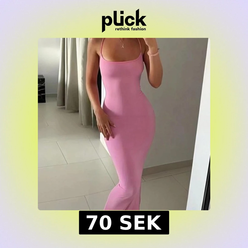 Supersnygg rosa långklänning med smala axelband och figurnära passform. Storlek S
