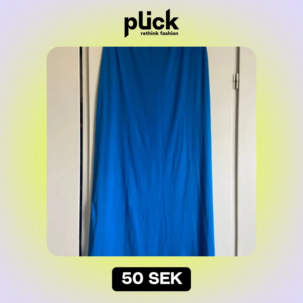 Säljer en elegant blå långklänning med en stilren slits på sidan. Perfekt för sommarens fester eller en kväll på stan. Klänningen har en enkel och tidlös design som passar alla tillfällen.