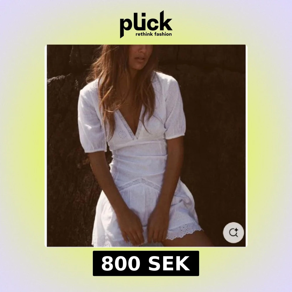 Säljer en söt vit klänning med v-ringning och spetsdetaljer. Klänningen har korta ärmar och en fin struktur i tyget. Perfekt för varma dagar och somriga tillfällen. 💫 Om ni undrar mått eller vill ha flera bilder är det bara att fråga! Möjligt att diskutera pris😋