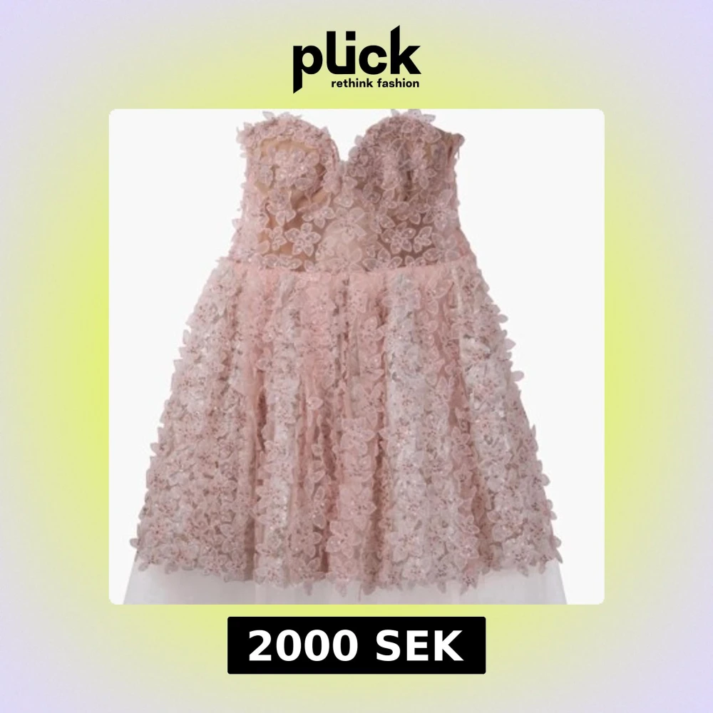 Klänningen är från Giambattista valli x h&m as limited edition kollektion. Charmig rosa klänning med blommigt mönster, har en inbyggd korsett upptill och hjärtformad urringning. Klänningen är axelbandslös och har en volangdetalj som ger en romantisk känsla. Perfekt för speciella tillfällen. Ursprungsorts låg på 5000