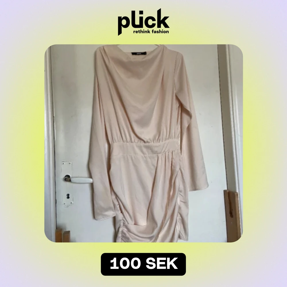 Köpt från Plick för ett tag sen, men har aldrig kommit till användning av mig. Super fin klänning. Använd 1 gång av förra säljaren. Finns 1 fläck (se bild), går eventuellt få bort i tvätten har inte provat.