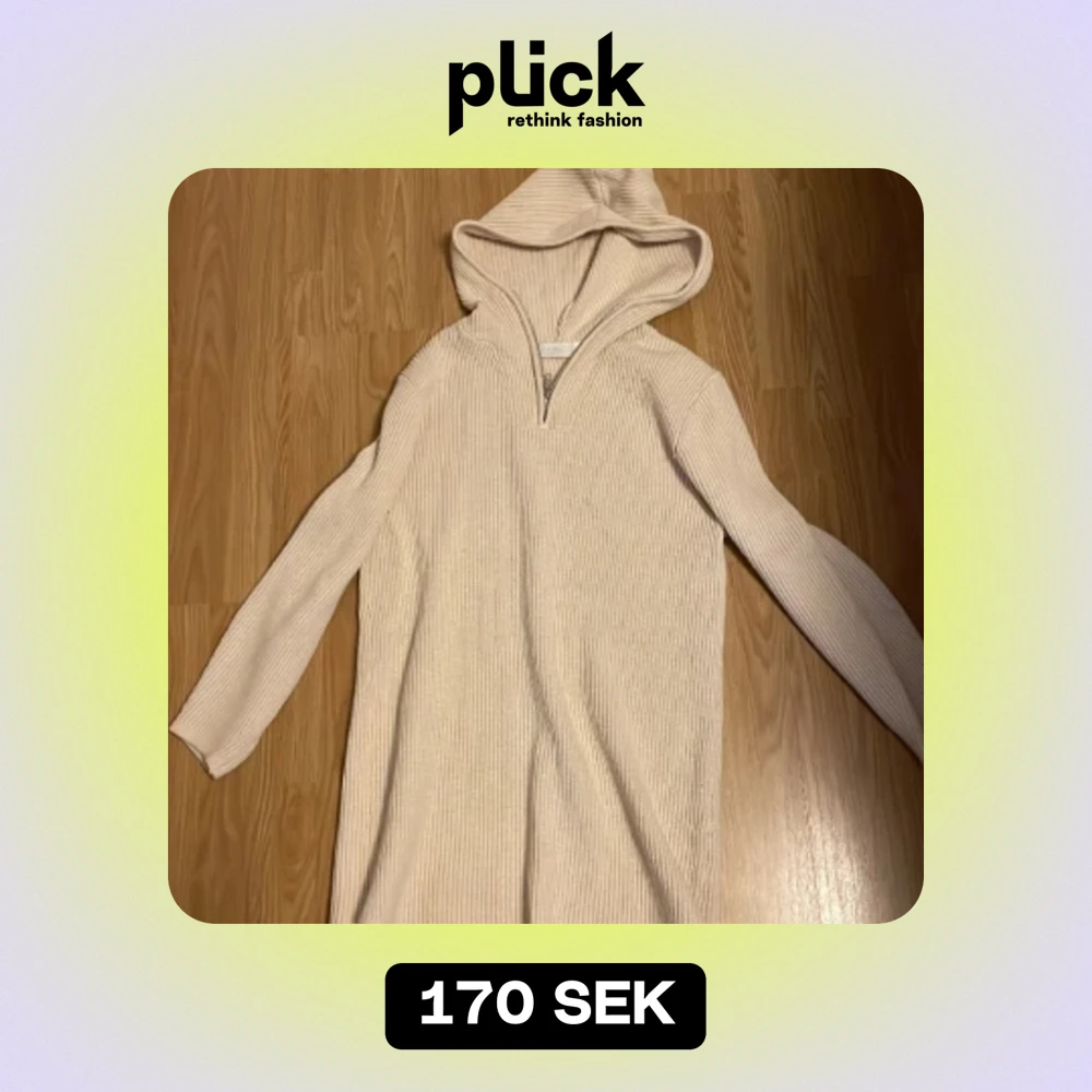 Stickad klänning med zip och luva. Jätteskönt material. Det är storlek Xs, men passar även de som vanligtvis har S.