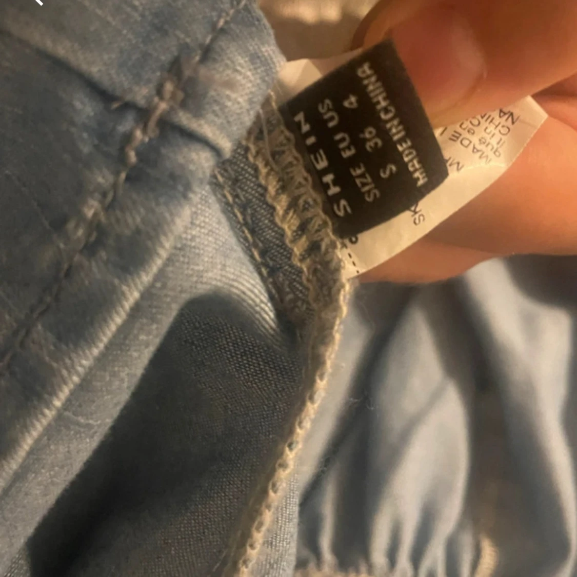 Supersöt ljusblå klänning från SHEIN med tunna axelband och v-ringad front. Klänningen har en luftig passform och är gjord i bomullsliknande material, perfekt för varma dagar. Enkel och stilren design som är lätt att matcha med accessoarer. Ganska kort klänning