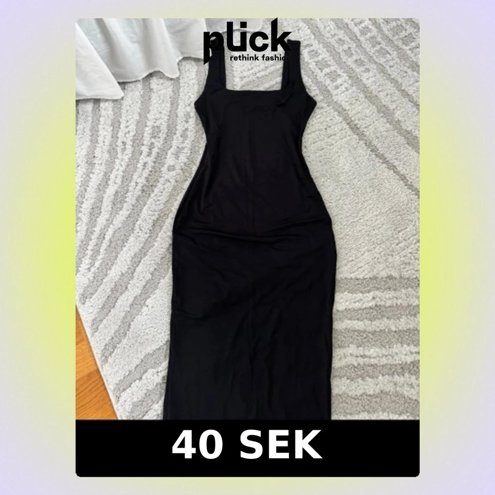En stilren svart långklänning med breda axelband och rak skärning. Klänningen har en enkel, elegant design och är figurnära. Perfekt för dig som gillar minimalistisk stil. Materialet känns mjukt och stretchigt, troligen bomull eller polyester.