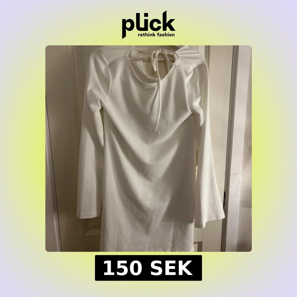 Elegant vit klänning med långa ärmar och knytning fram. Perfekt för en stilren look. Materialet ger en fin struktur och klänningen har en klassisk passform. Den är helt ny med prislapp💕