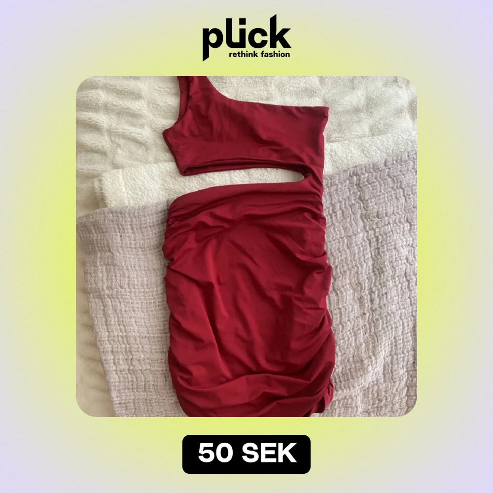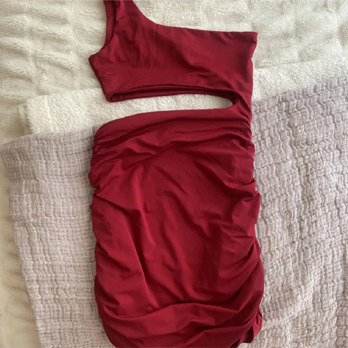 Snygg vinröd oneshoulder klänning i ett mjukt och stretchigt material. Perfekt för festliga tillfällen med sin eleganta och moderna design. Klänningen har en åtsittande passform som framhäver figuren.