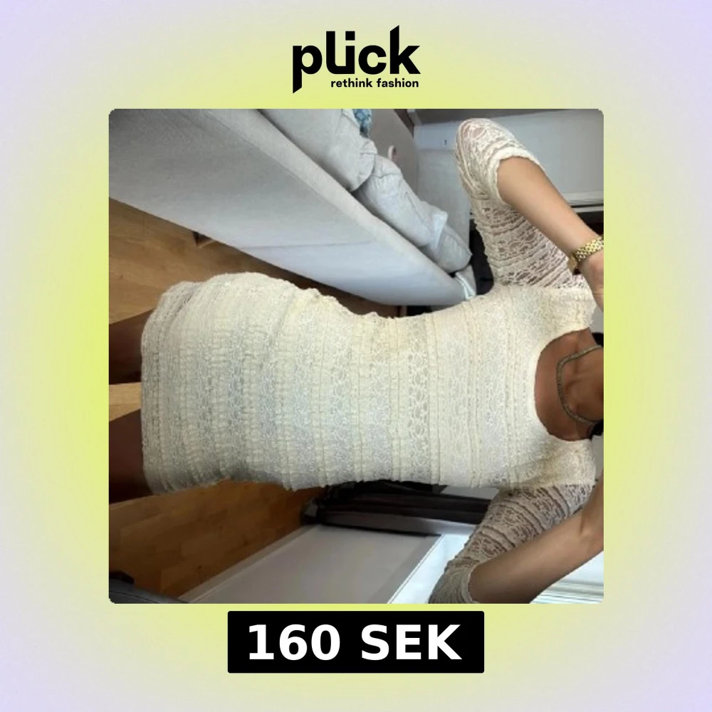 Superfin vit spetsklänning med figurnära passform och trekvartsärmar. Klänningen har vackra spetsdetaljer över hela plagget och en rund halsringning. Perfekt för dig som gillar romantisk och stilren look.