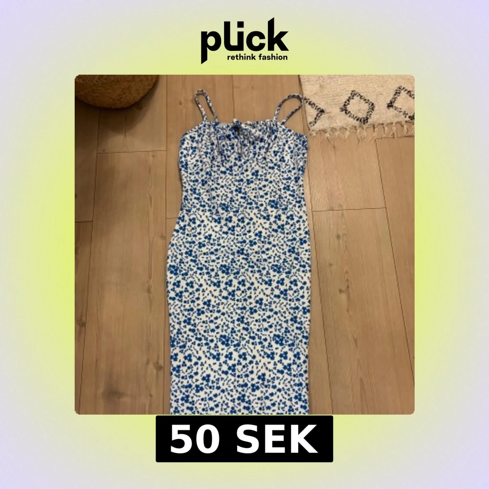 Supersöt långklänning med smala axelband och blått blommönster på vit botten. Klänningen har en figurnära passform och rynkdetalj vid bysten. Perfekt för varma dagar och somriga vibes.