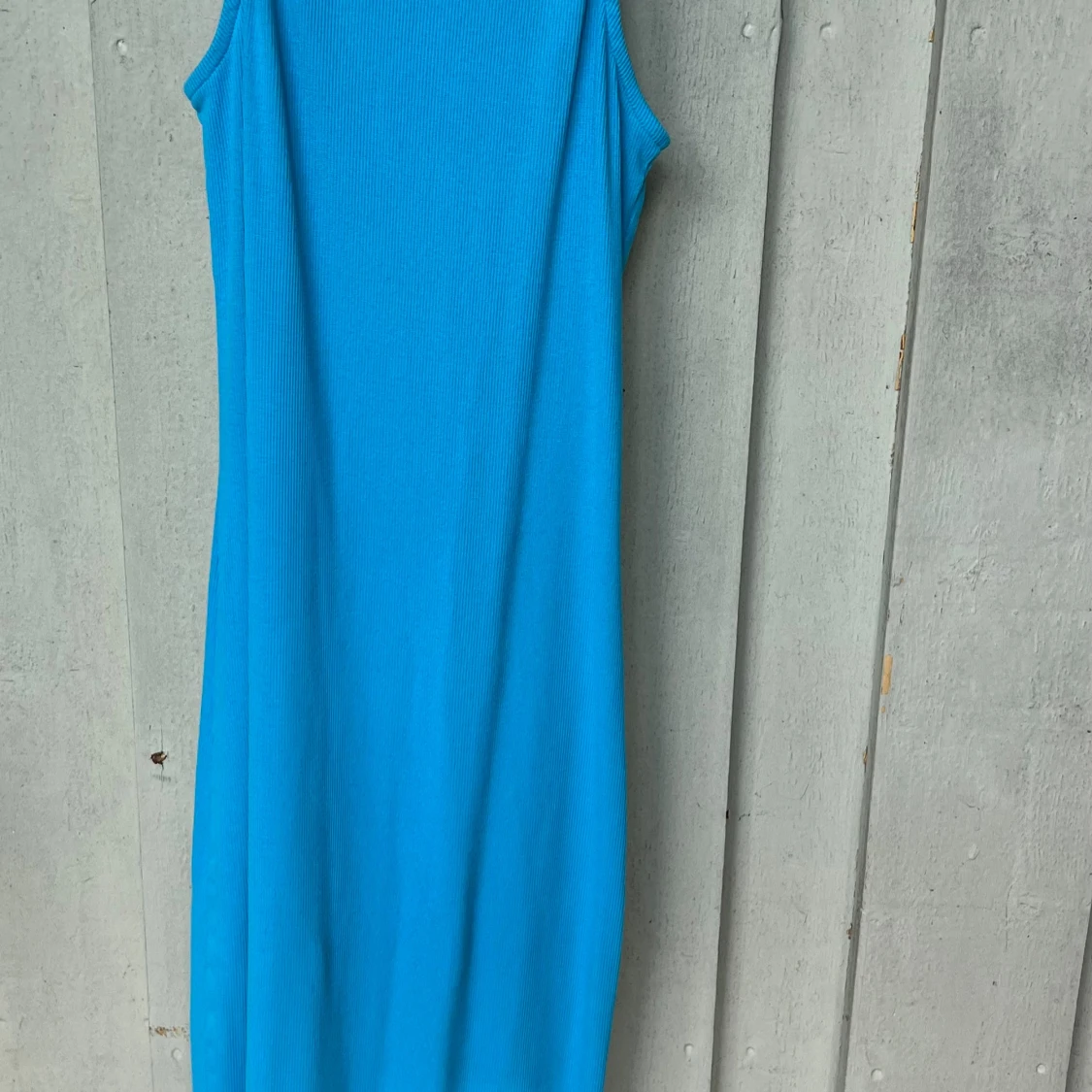 Säljer en snygg blå långklänning från Reserved i storlek S. Klänningen är ärmlös och har en ribbad struktur som ger en cool och modern känsla. Perfekt för dig som gillar enkel men stilren design och vill sticka ut med färg.