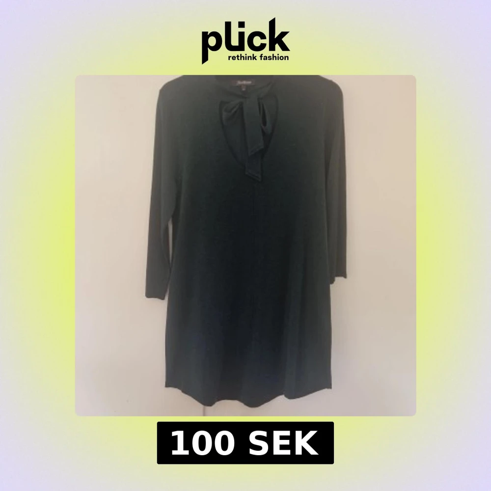 Mörkgrön klänning från Ilse Jacobsen med trekvartsärm och snygg rosettdetalj vid halsen. Rak passform och mjukt material som känns skönt mot huden. Perfekt för dig som gillar stilrena och enkla plagg med en twist.