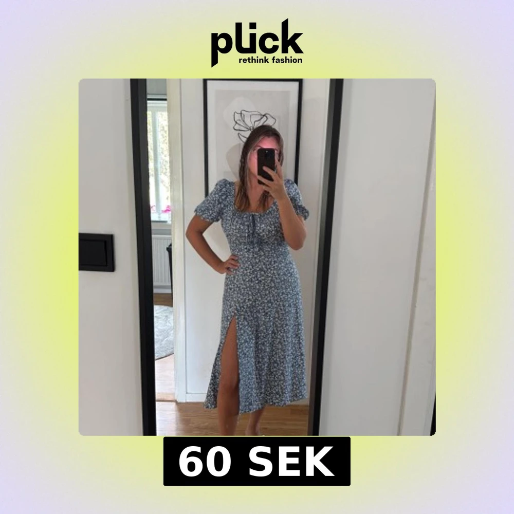 Blommig klänning med slits, storlek S😊